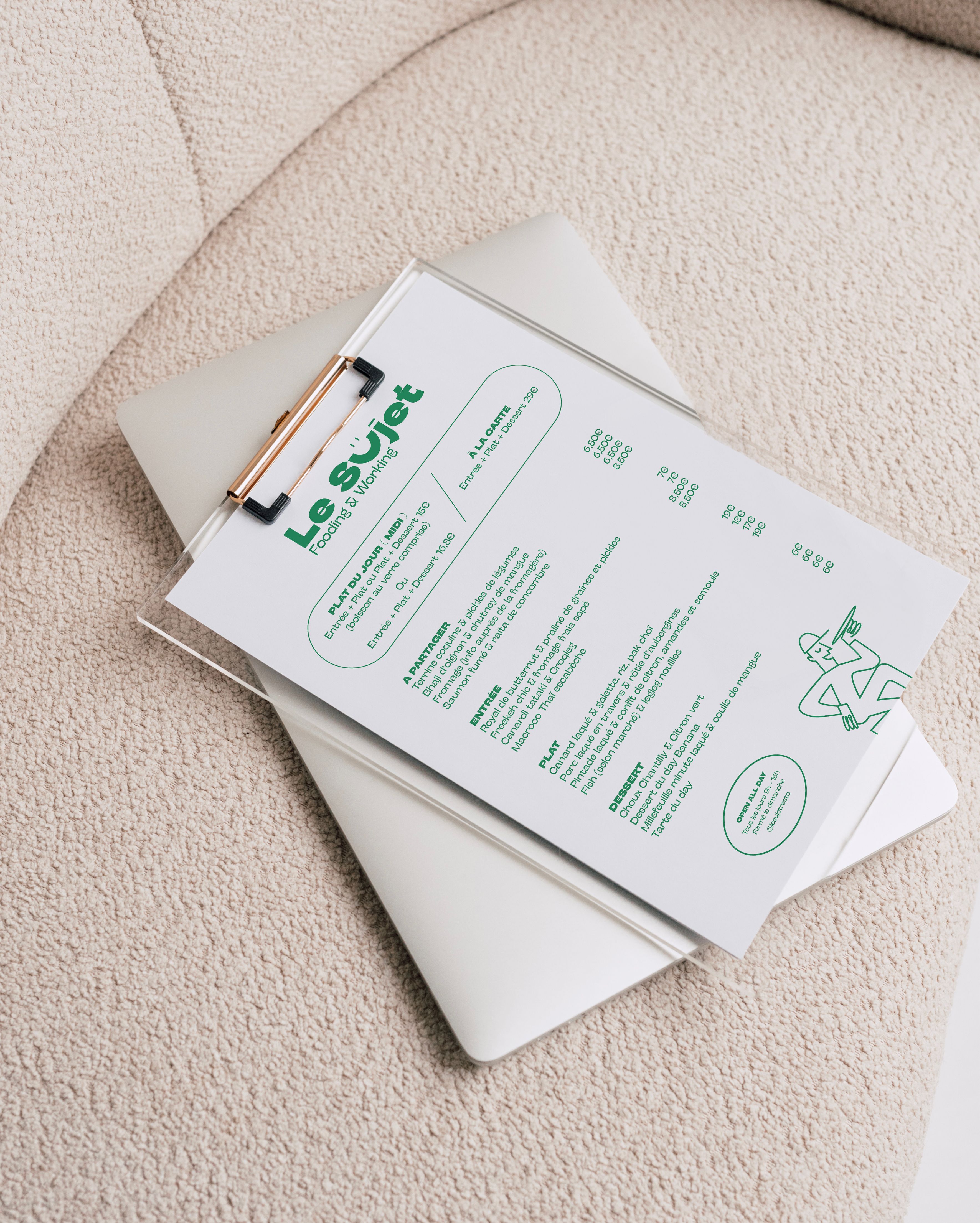 Identité visuelle pour le restaurant Le Sujet à Perpignan. Une identité qui se veut moderne, simple et cool à l’image des deux associés qui aiment la food et le bon pinard !