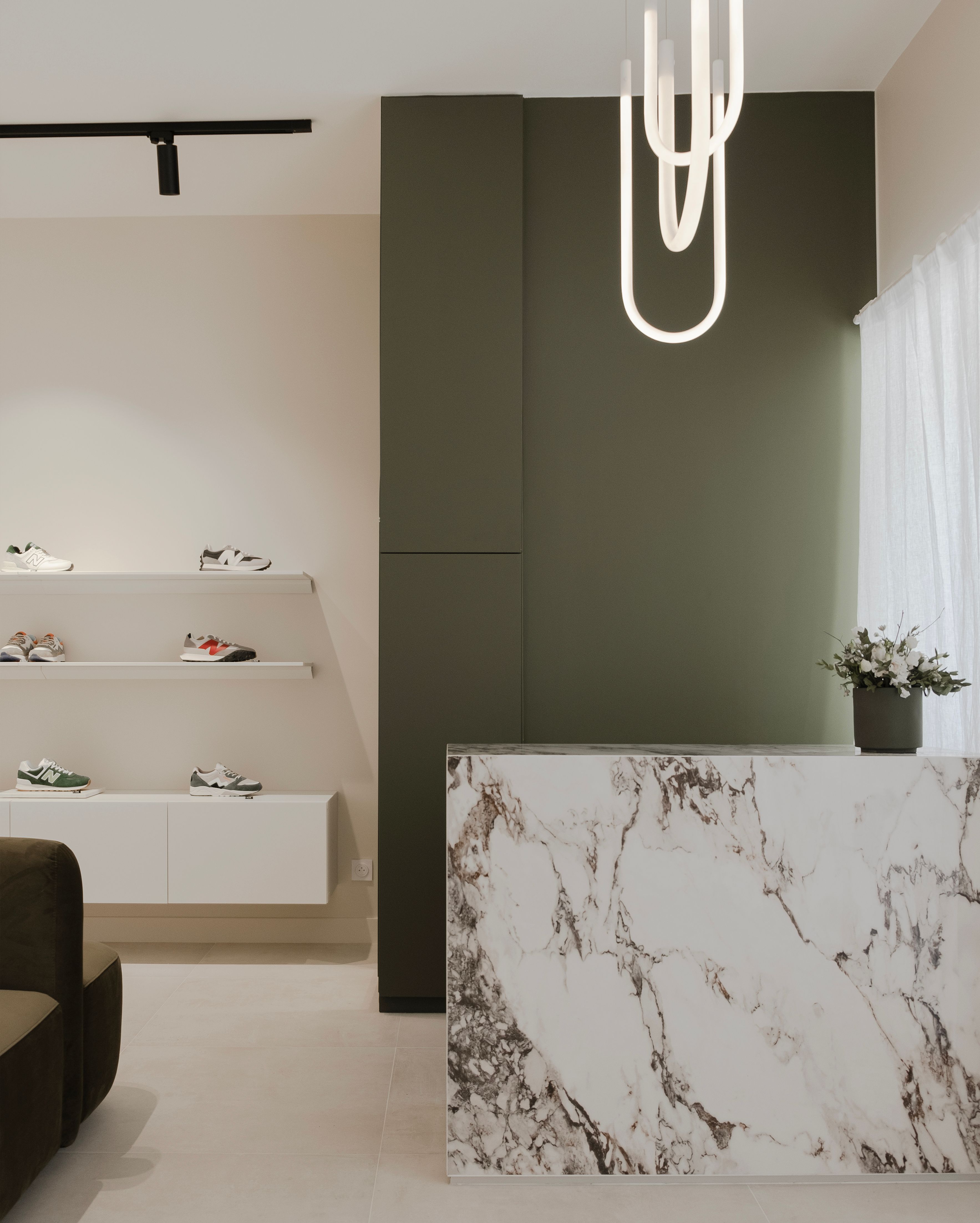 L'aménagement et la décoration ont été confié à l'équipe d'architectes Antrophie qui ont su donner un vrai caractère à la boutique.